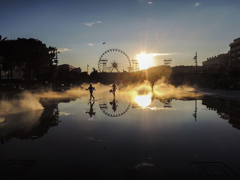 La foto in questione immortala la promenade di Nizza, resa splendida dai meravigliosi giochi d’acqua e dai riflessi del sole sul suolo.