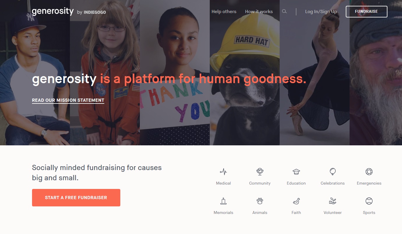 E’ stata lanciata dalla piattaforma di crowdfunding Indiegogo “Generosity by Indiegogo”, un iniziativa specializzata in personal fundraising e non profit.Si tratta di un’evoluzione di Indiegogo Life, nata nel dicembre 2014 e che in soli 10 mesi ha già raggiunto notevoli successi come le due campagne da 2,3 milioni e 1,4 milioni di dollari aperte dal celebre fotografo Brandon Stanton di Humans Of New York. Proprio per questo la piattaforma ha voluto espandandersi specializzandosi in personal fundraising e non profit.