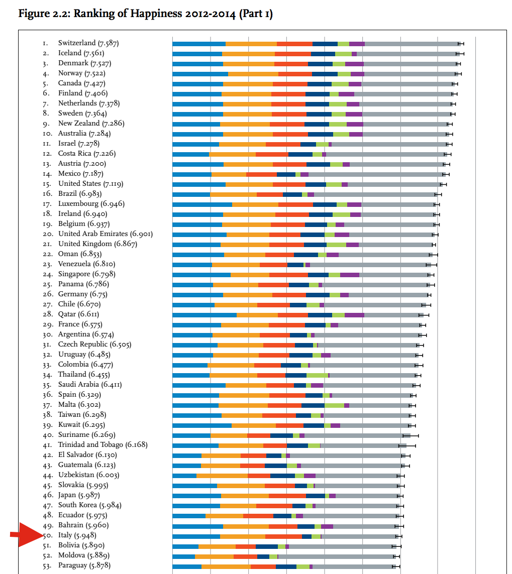 Ora, sottovalutare questo rapporto Onu sarebbe un errore: la felicità è un fattore fondamentale per la crescita economica e il buon funzionamento di un Paese. Sarebbe auspicabile prenderne atto.